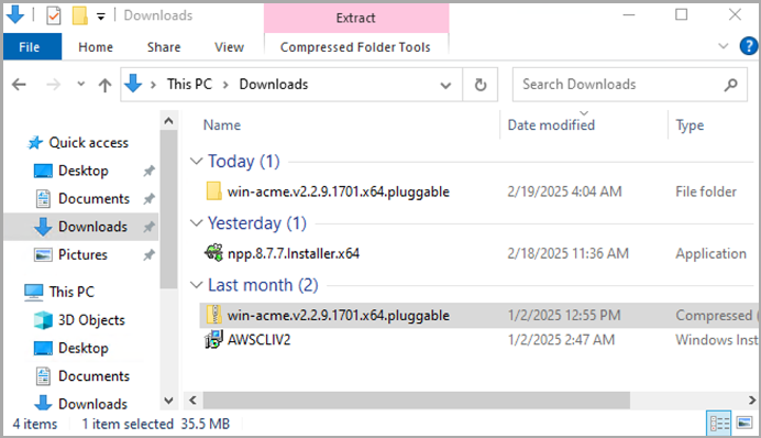 Descompacte a pasta do WIN-ACME. Agora com a pasta descompactado altere o nome da pasta de: win-acme.v2.2.9.1701.x64.pluggable para win-acme
