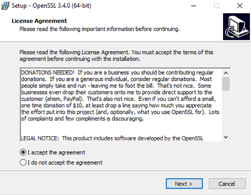 Siga os passos abaixo para instalar o Win64OpenSSL-3_4_0.