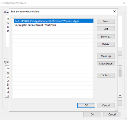 Configurando a variável de ambiente para o OpenSSL